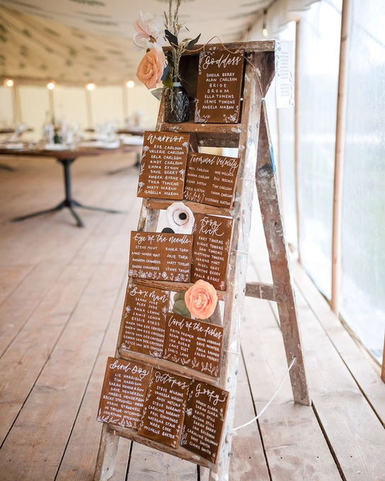 Signage is a great way of letting your guests know exactly what's happening, where and when. It can be fun, directional, commemorative; you can have menus, an order of the day, a table plan, unplugged ceremony signs.